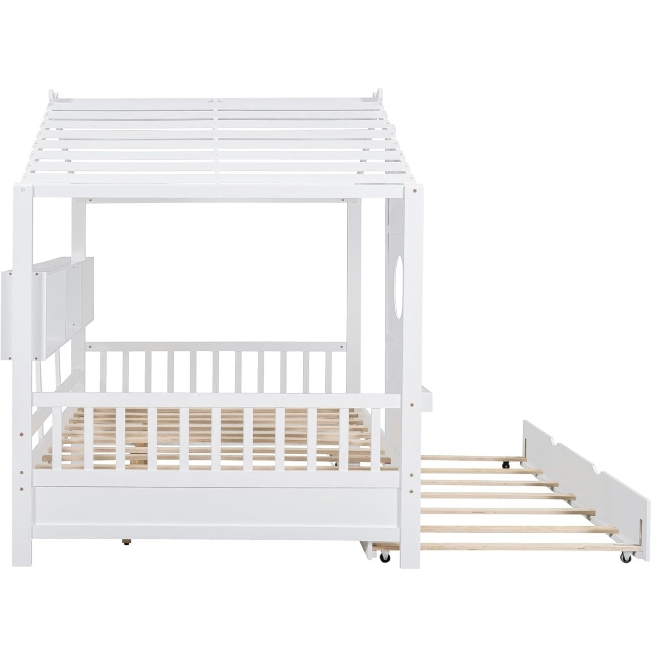 Diseño contemporáneo y funcionalidad en perfecta armonía. Esta cama matrimonial de madera incorpora una cama nido inferior y un estante integrado, ofreciendo un espacio práctico y elegante para habitaciones compartidas o de huéspedes.