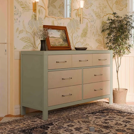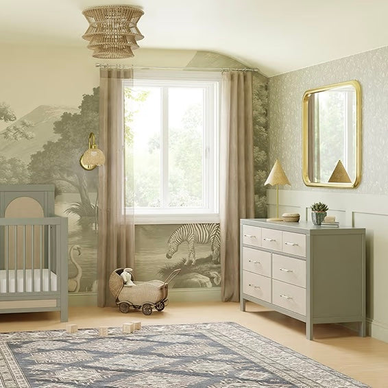 Diseño atemporal, materiales nobles y funcionalidad para cada etapa. La cómoda Eloise combina la calidez de la madera de álamo y pino con el acabado en salvia francesa y arena, creando una pieza que aporta serenidad y equilibrio a cualquier dormitorio.
