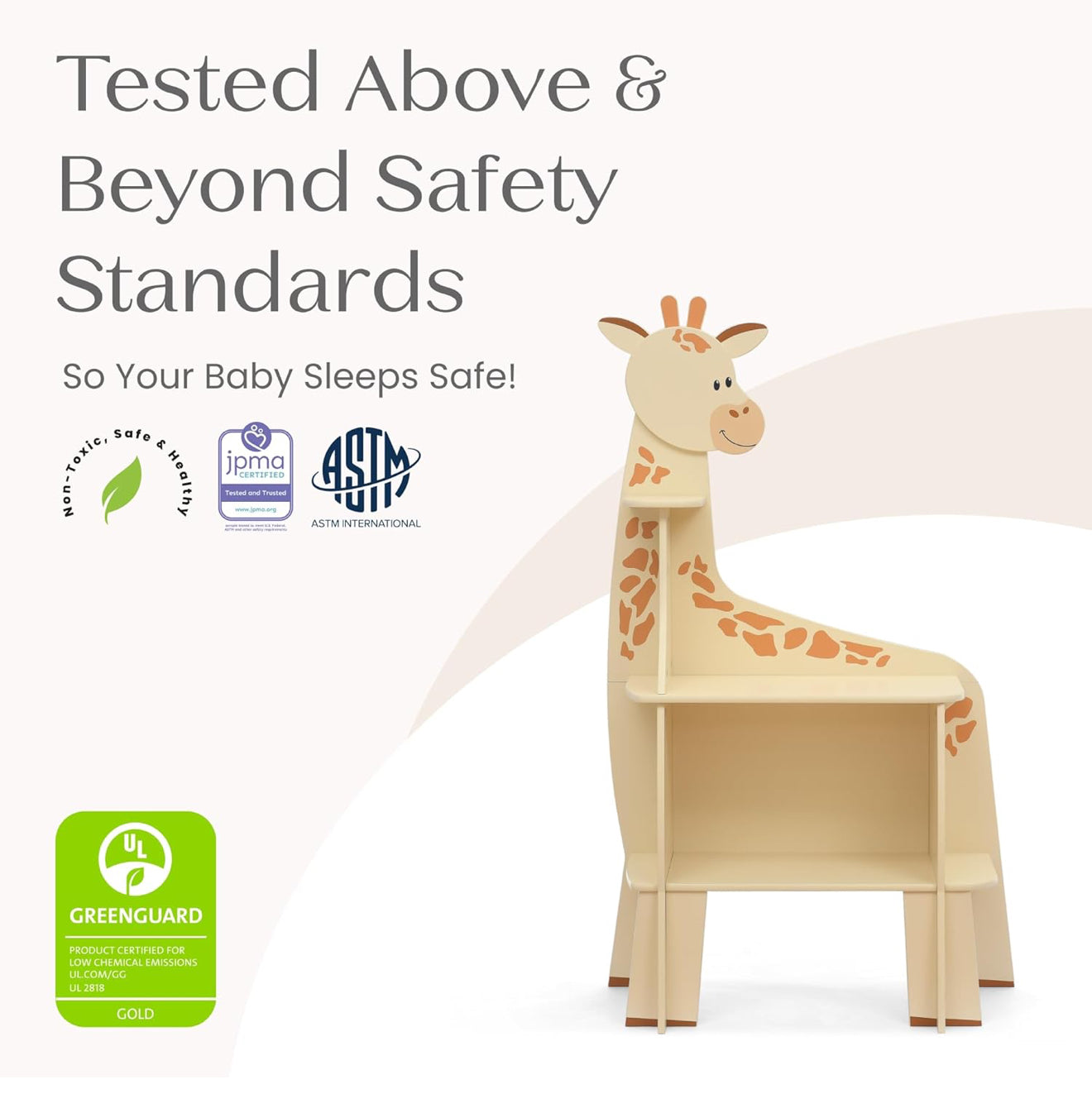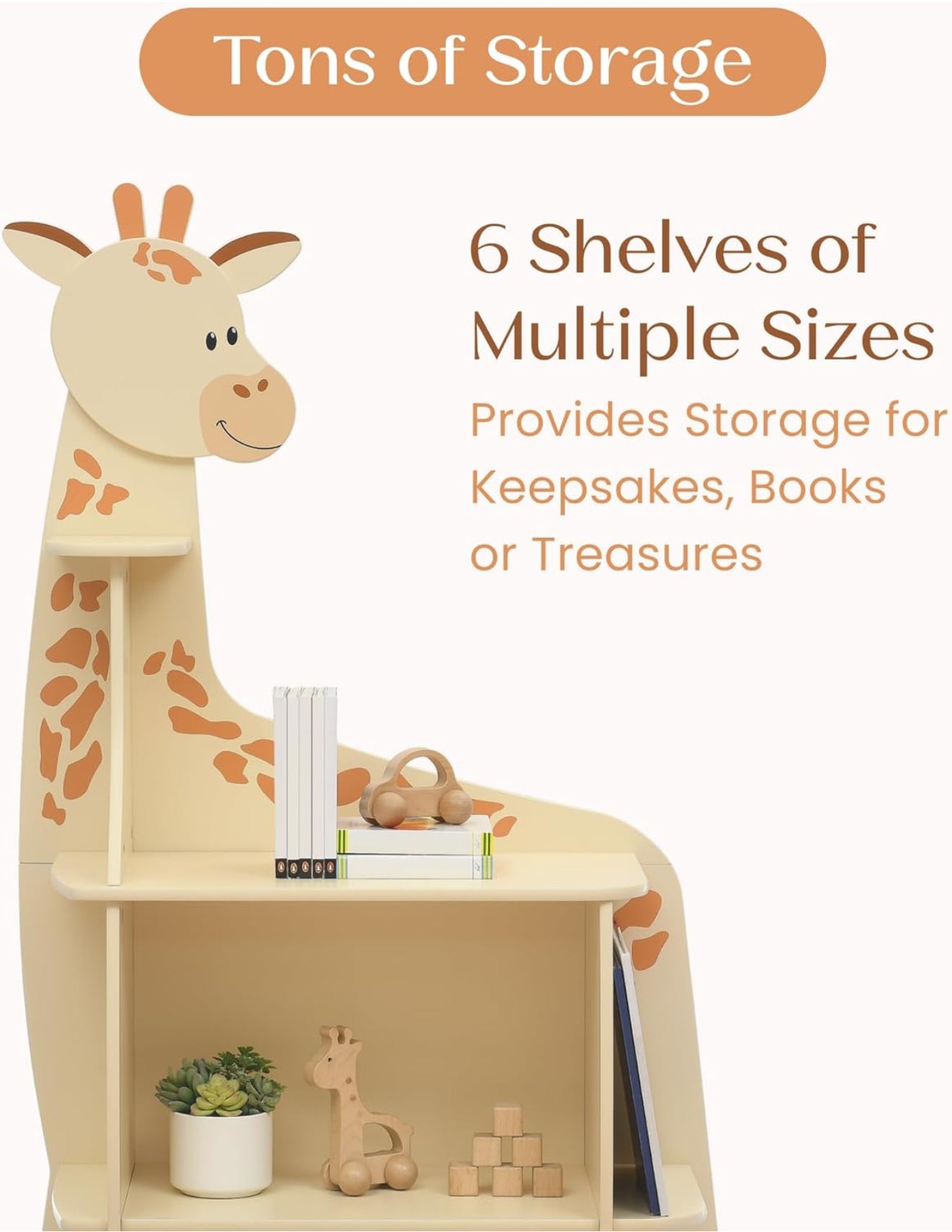 La estantería de jirafas es una adición tremendamente elegante a cualquier guardería, dormitorio o sala de juegos. Cuenta con seis espaciosos estantes para guardar todos sus libros y juguetes favoritos, y aporta una dosis bienvenida de personalidad a cualquier espacio. Además, esta bonita estantería para niños incluye herrajes antipuntas para que puedas fijar fácilmente la estantería a la pared para mayor seguridad y está certificada GREENGUARD Gold, lo que significa que está diseñada para contribuir a un aire más limpio para un hogar saludable.