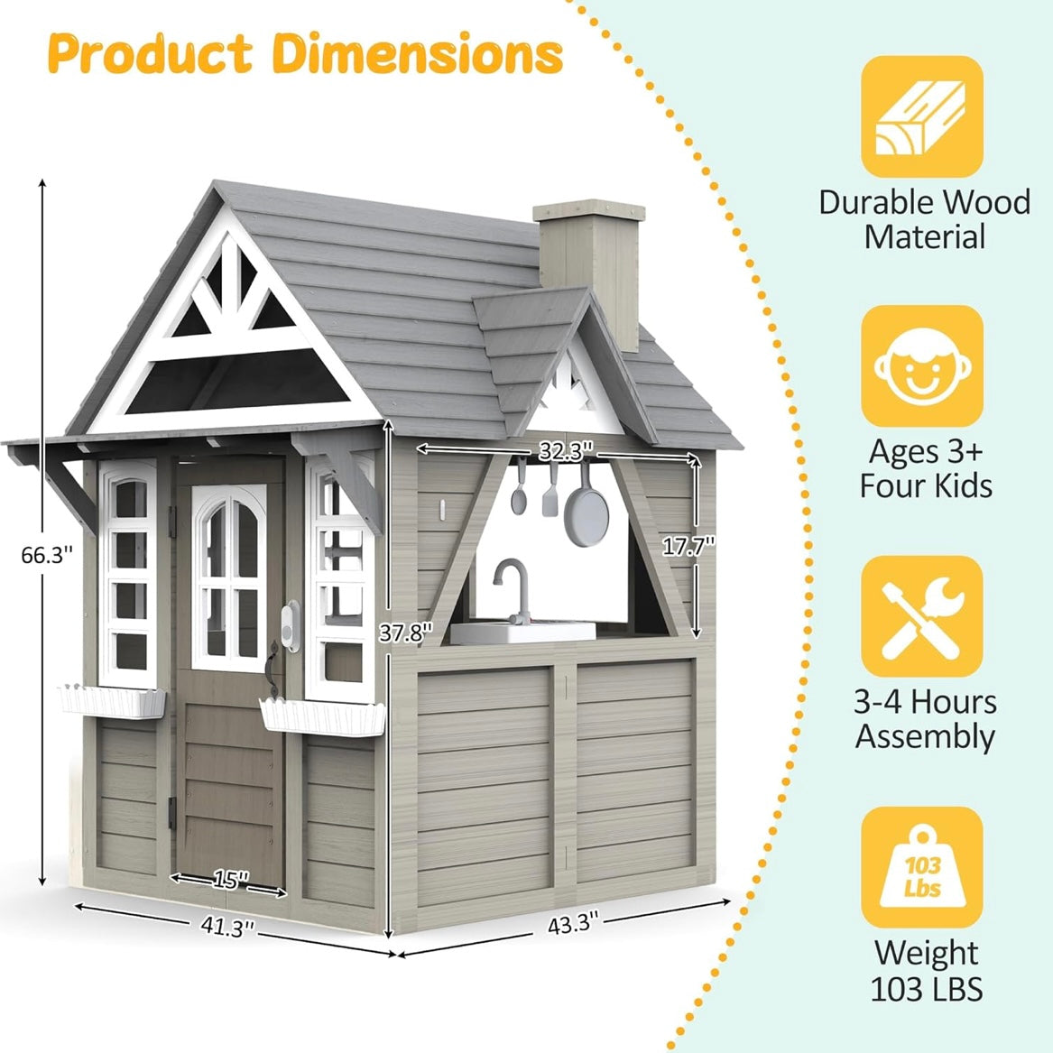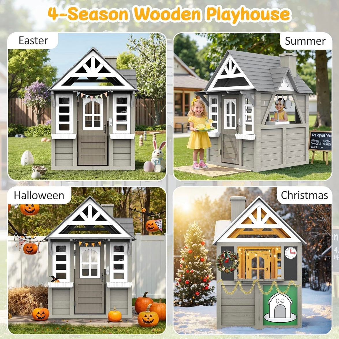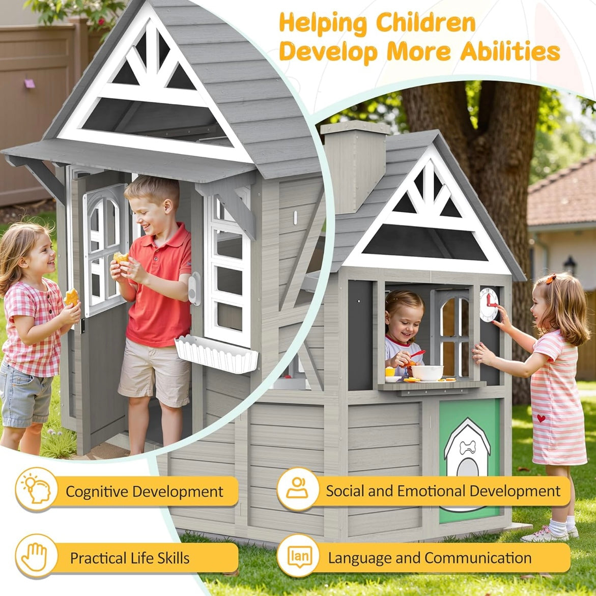Crea un espacio mágico de juego con esta casa de juegos de madera para niños, diseñada para fomentar la imaginación, el juego en grupo y el desarrollo social. Gracias a su interior amplio, puede acomodar cómodamente de 2 a 4 niños al mismo tiempo, convirtiéndola en el lugar ideal para compartir aventuras, juegos cooperativos y momentos inolvidables.