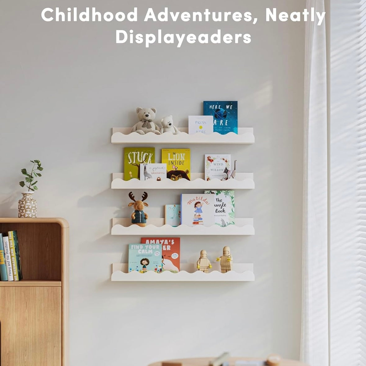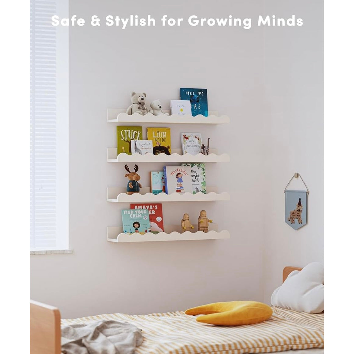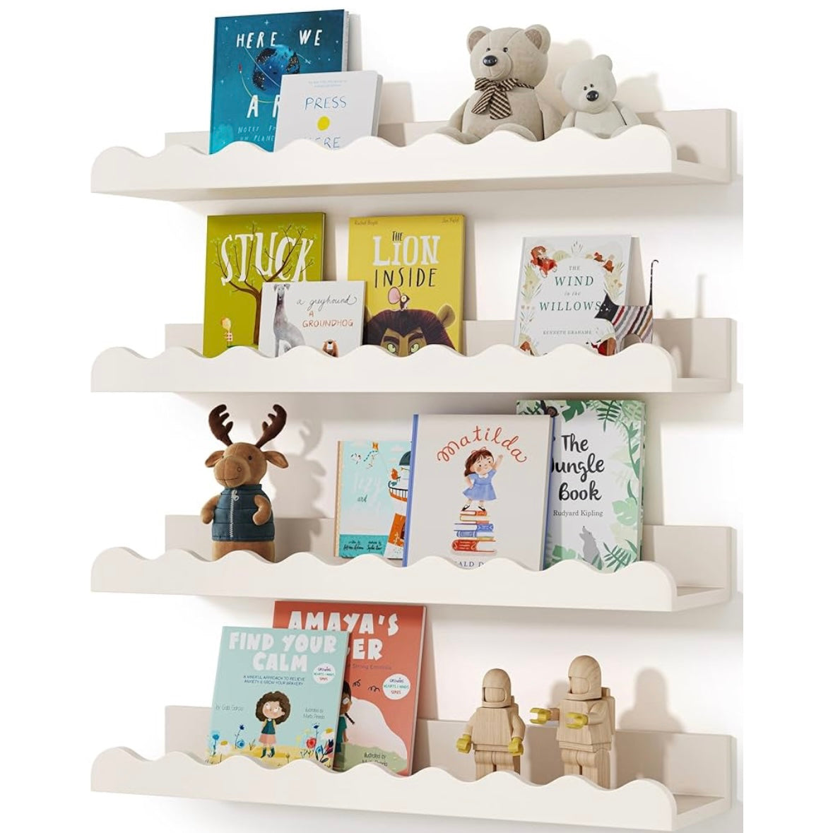 Este juego de 4 estanterías flotantes para niños es la solución perfecta para organizar y decorar espacios infantiles de forma práctica y estética. Su diseño minimalista en color blanco se integra fácilmente en guarderías, recámaras infantiles y salas de juego, aportando orden sin recargar visualmente el espacio.