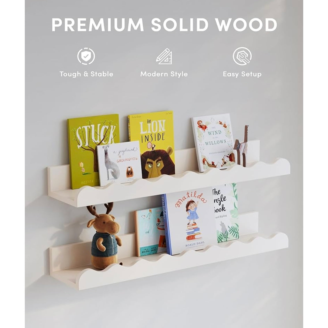Cada estante cuenta con una repisa frontal que ayuda a mantener libros, cuentos, cuadros decorativos y juguetes pequeños en su lugar, ideal para fomentar el orden y el acceso fácil para los niños. Son perfectos para crear rincones de lectura, exhibir libros de portada o añadir un toque decorativo funcional a la pared.
