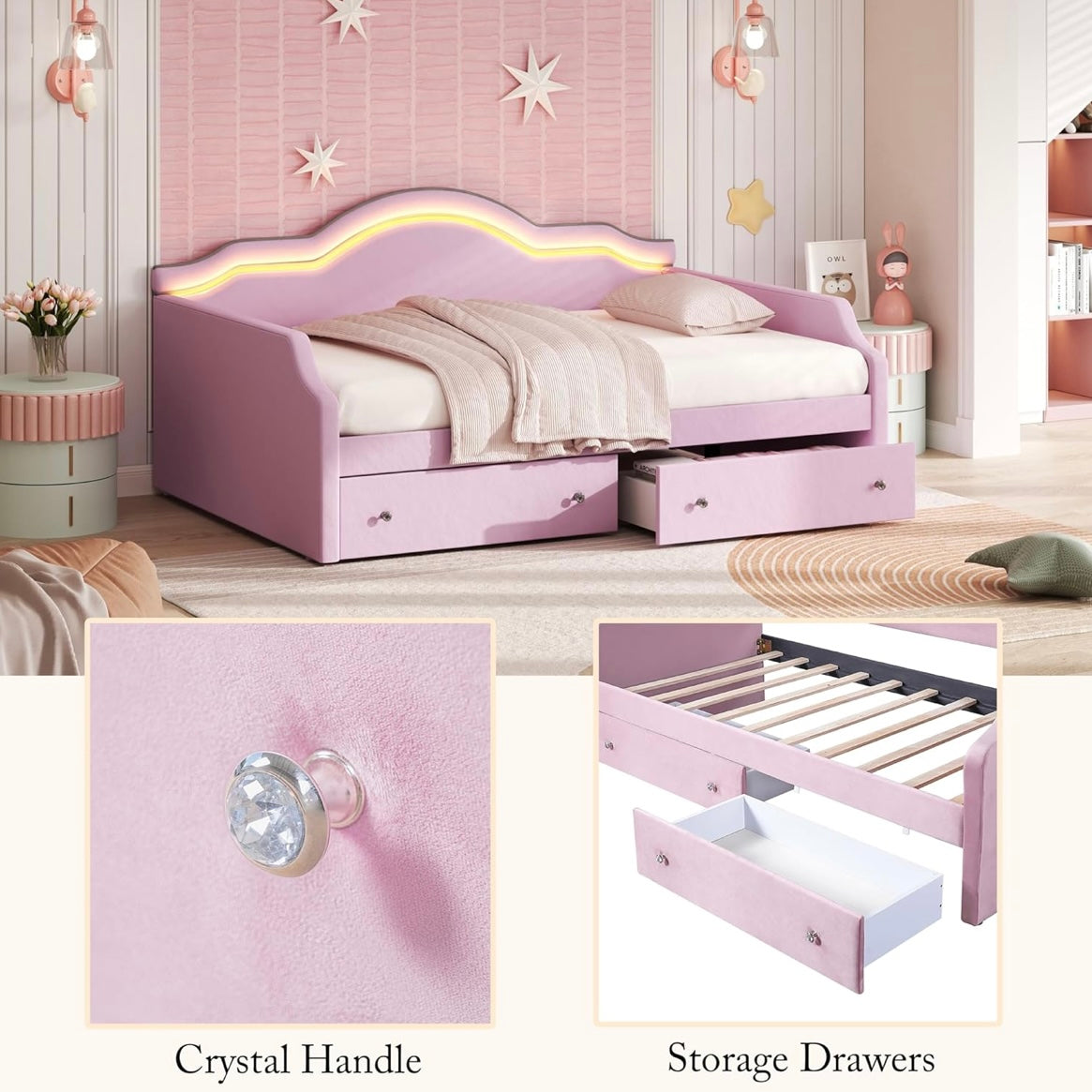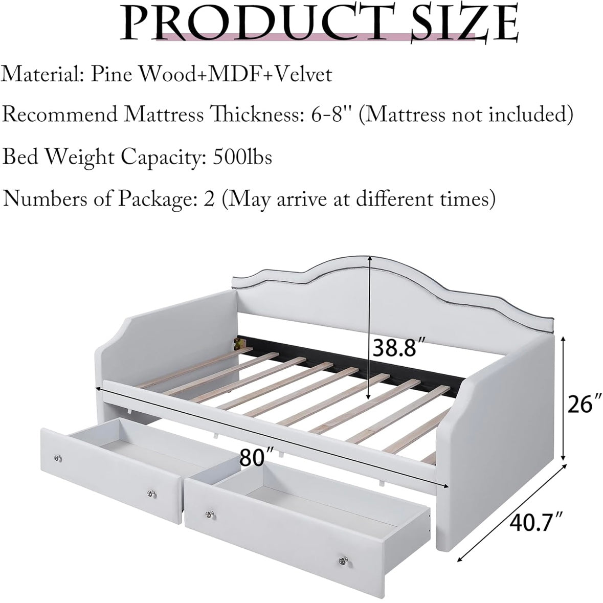 Pensado para el uso diario, este sofá cama incorpora dos amplios cajones de almacenamiento ocultos en la parte inferior, ideales para guardar ropa de cama, juguetes o libros y mantener el espacio siempre ordenado. Los tiradores de cristal añaden un detalle decorativo lujoso que complementa perfectamente la textura del terciopelo.