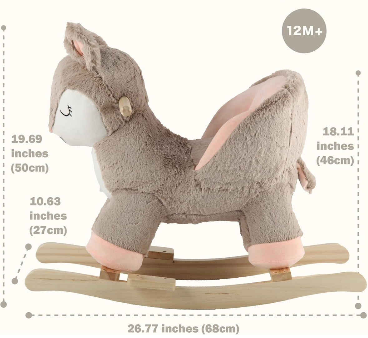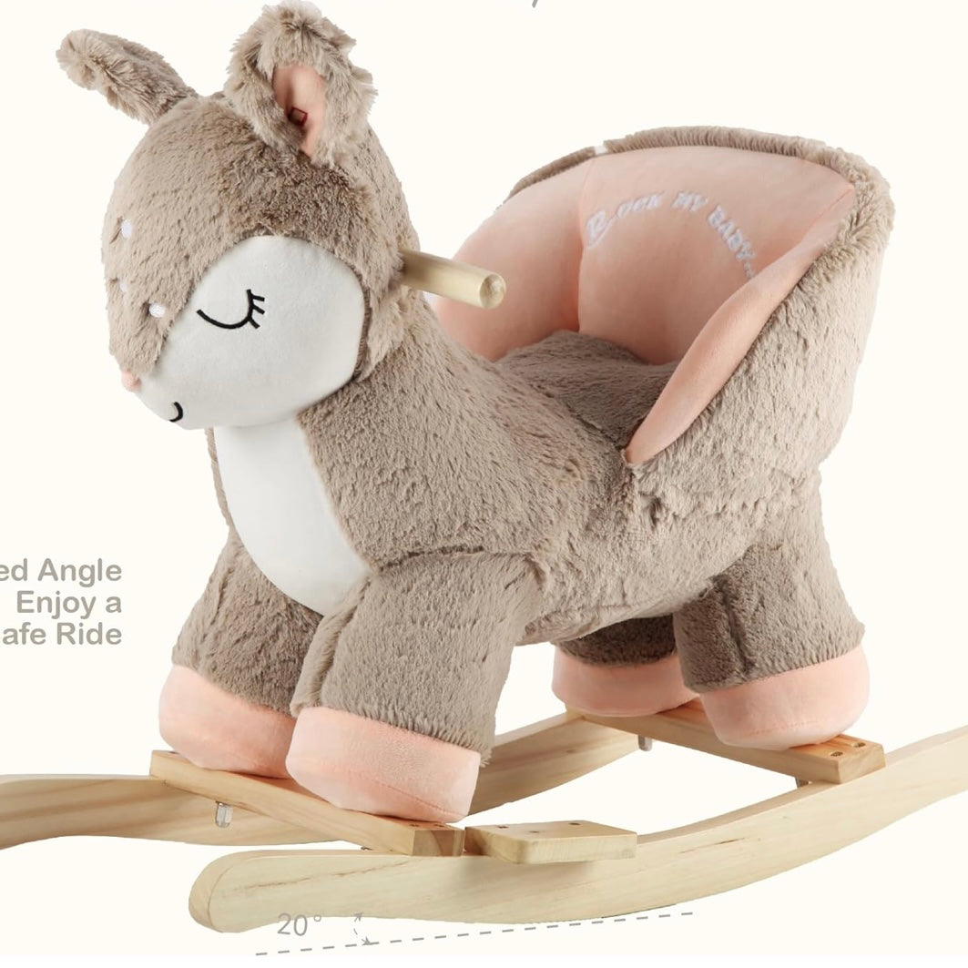 Este caballito mecedor con diseño de ciervo combina ternura, funcionalidad y estimulación temprana para crear una experiencia de juego segura y reconfortante para los más pequeños. Sus orejas suaves y presionables reproducen canciones de cuna relajantes, ayudando a crear un ambiente tranquilo mientras despiertan la imaginación del niño con un toque musical encantador.