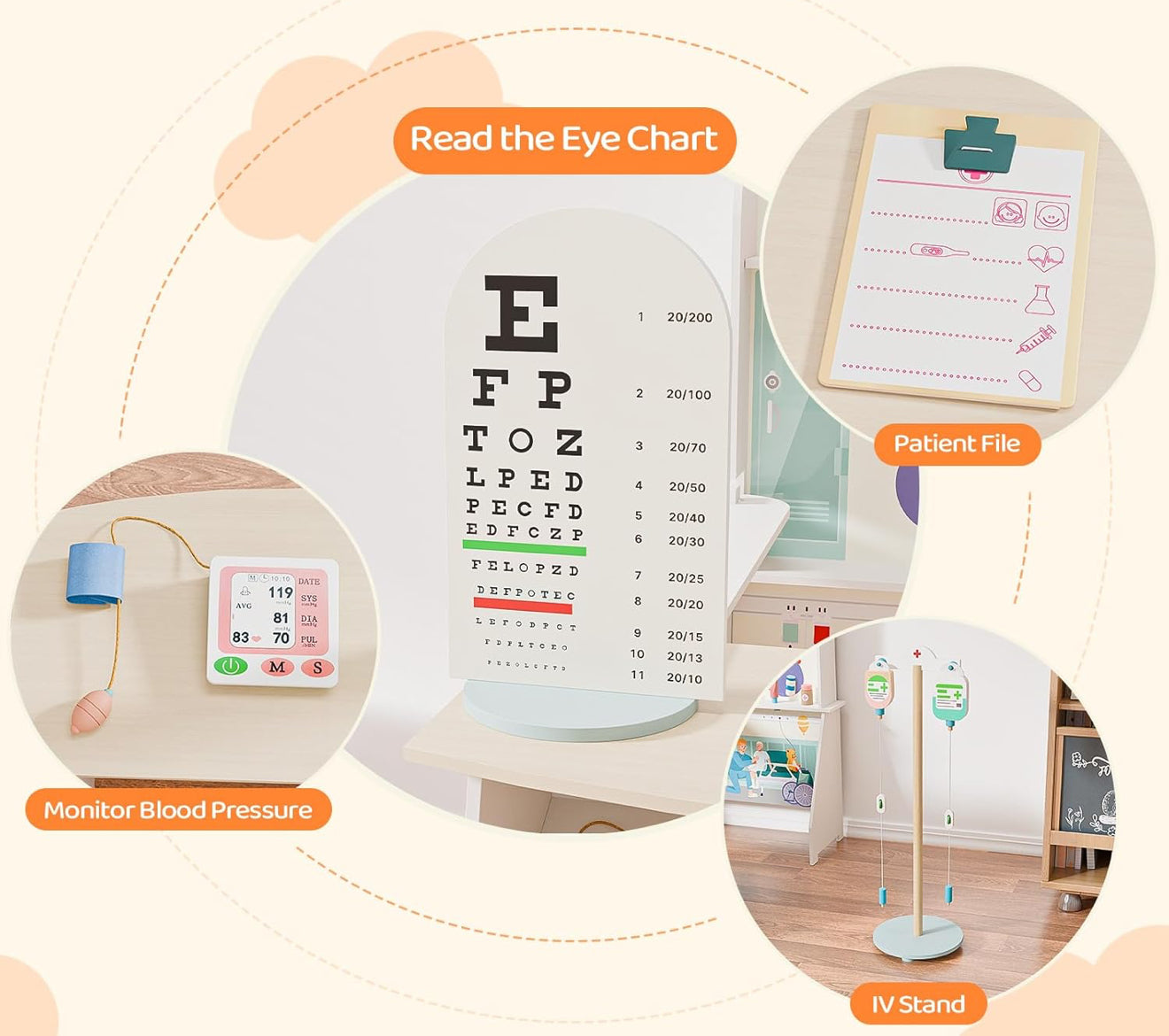 Juego de madera con accesorios médicos, perfecto para que los niños pequeños jueguen al médico con amigos