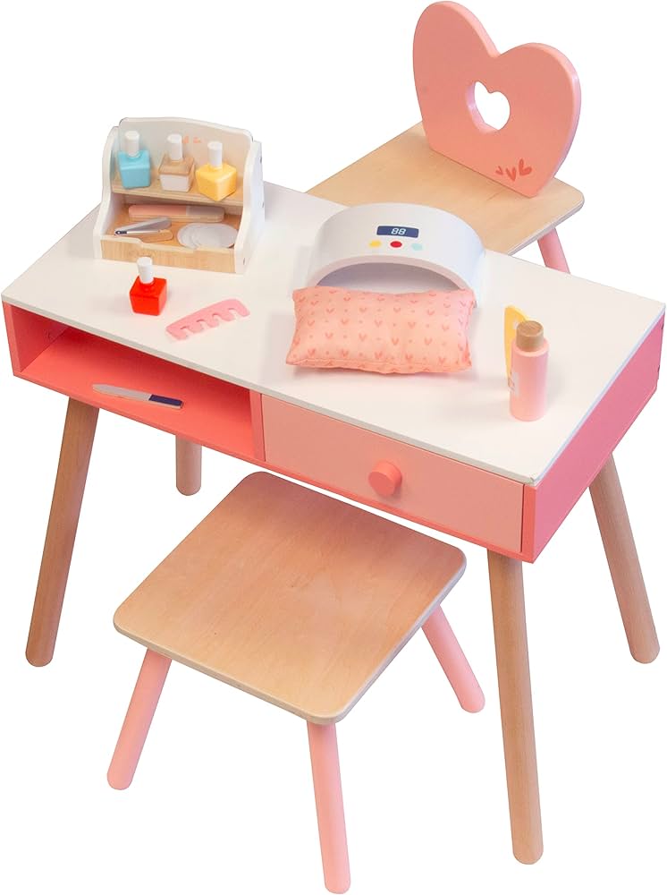 - My Nail Salon Playset - Adorable centro de juego de madera para niños, niñas y niños. Este juego es completamente libre de desorden. Todas las piezas de juego son para jugar a fingir, no contienen ningún esmalte de uñas real o productos de belleza