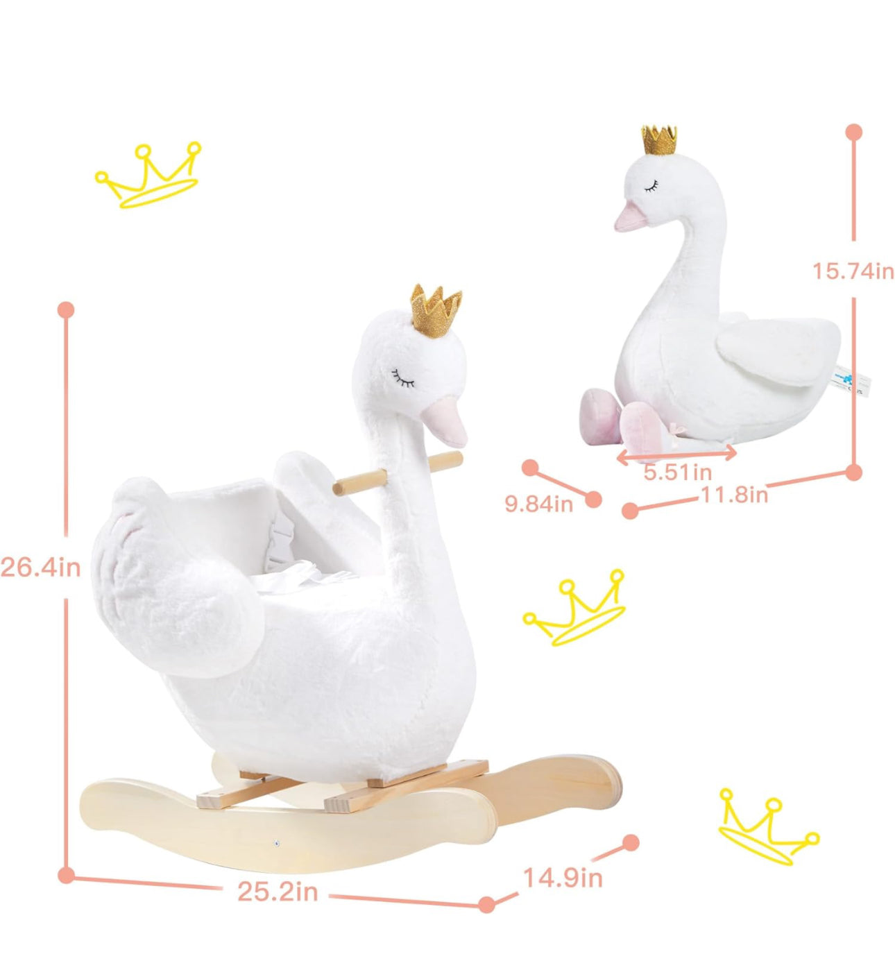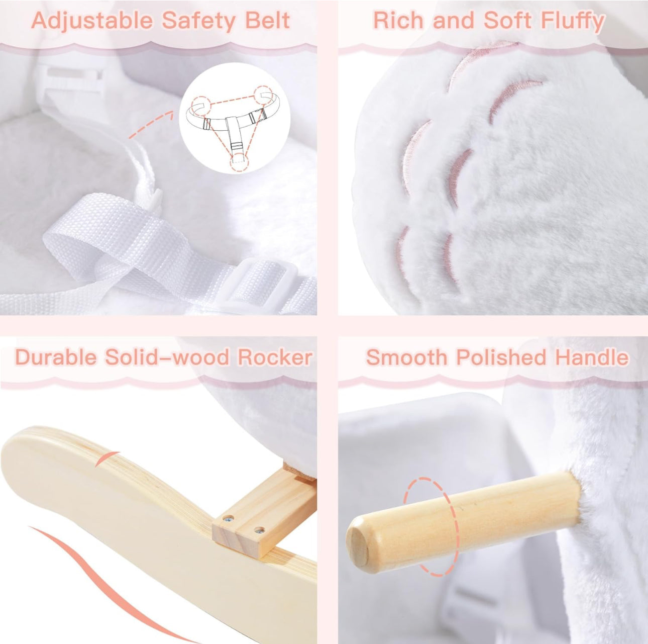 - Asiento de 3 lados, garantiza siempre la seguridad del bebé: asiento diseñado para niños pequeños que tienen menos capacidad de equilibrio que los niños mayores. Un asiento alto de 3 lados de esta mecedora de juego garantiza que los niños estarán siempre protegidos mientras se balancean, también este estante de cisne blanco está bien relleno de pp. algodón, apoyarse contra él no dañará un cabello, solo comodidad pura! También es un caballo mecedor adecuado para guardería o juguetes para niños pequeños, un juguete mecedor imprescindible.