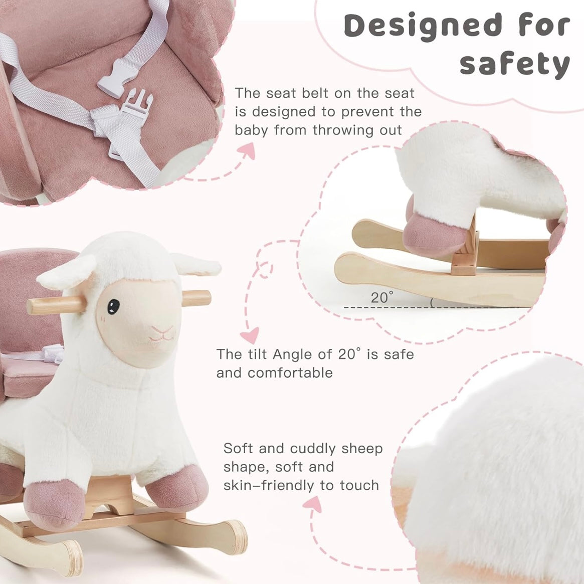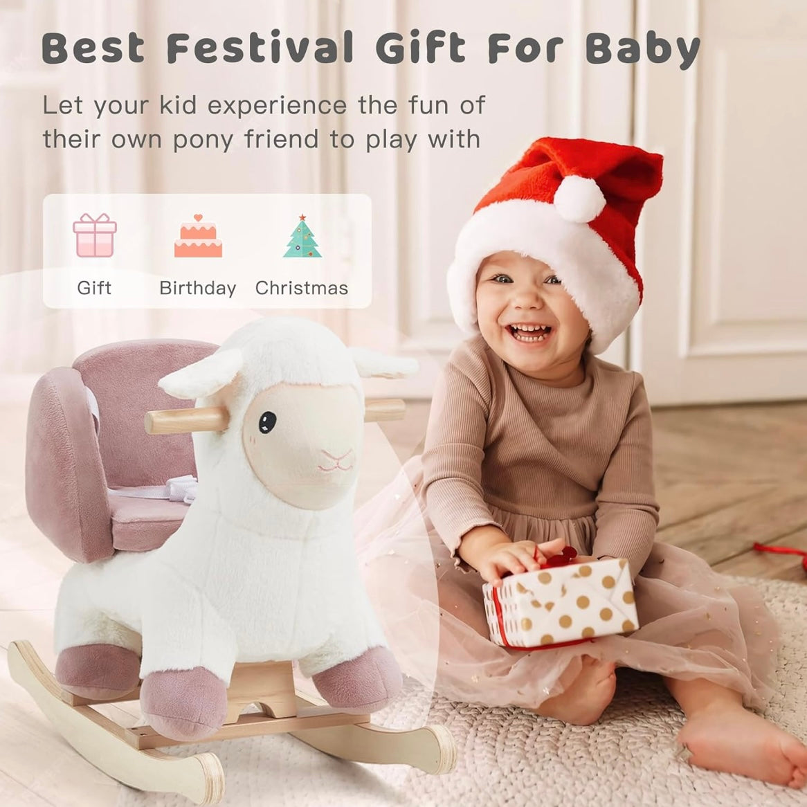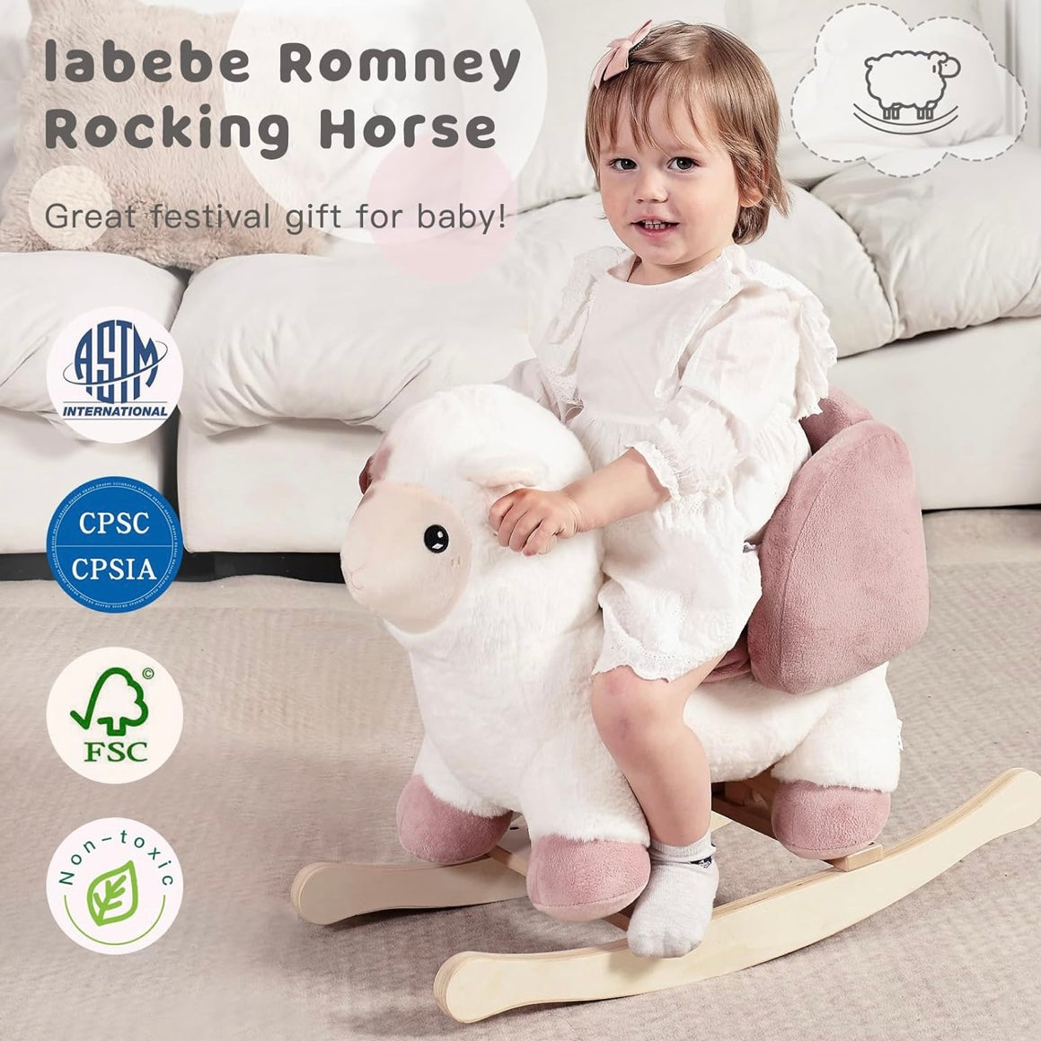 El caballito mecedor de oveja Labebe es un encantador juguete para bebés diseñado para combinar ternura, seguridad y desarrollo infantil. Su adorable forma de ovejita, creada originalmente por un equipo de diseño francés, convierte este balancín en un compañero ideal para los primeros años de vida. Su estética suave y acogedora lo hace perfecto tanto para el juego diario como para complementar la decoración de una guardería o sala de juegos.